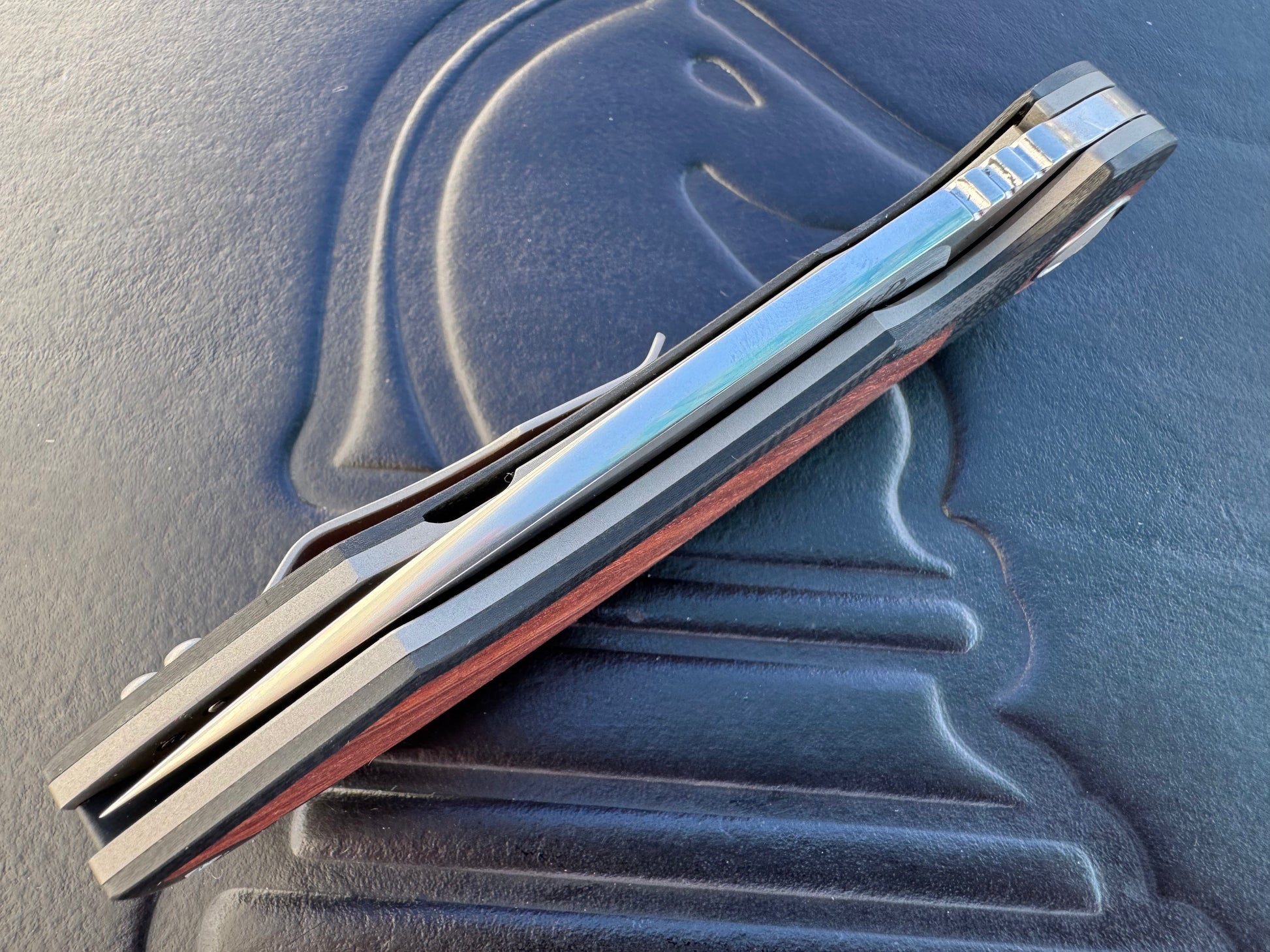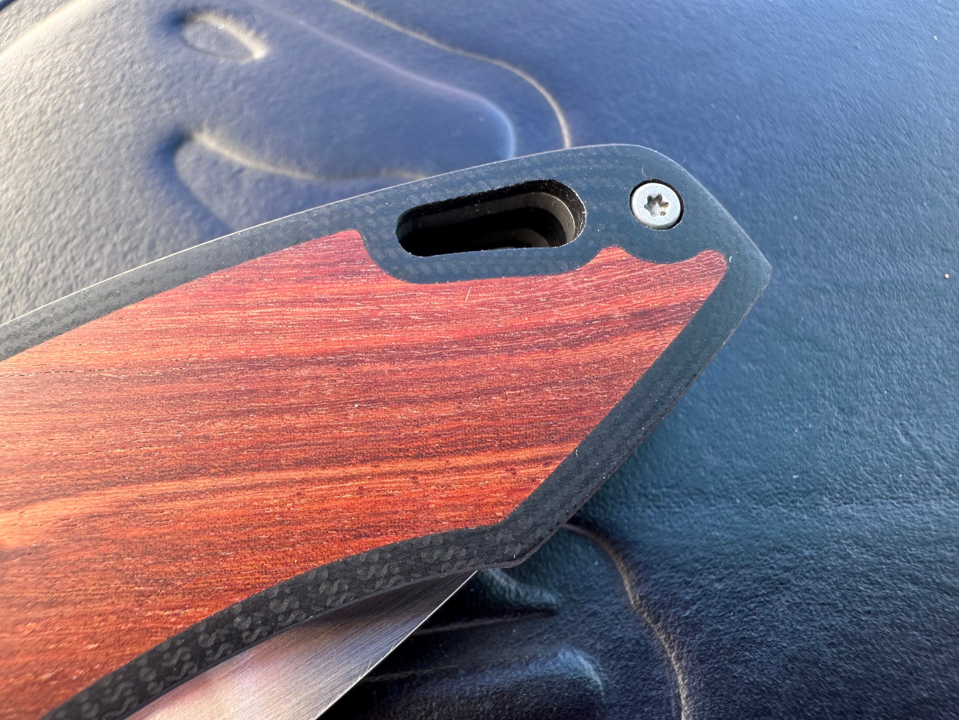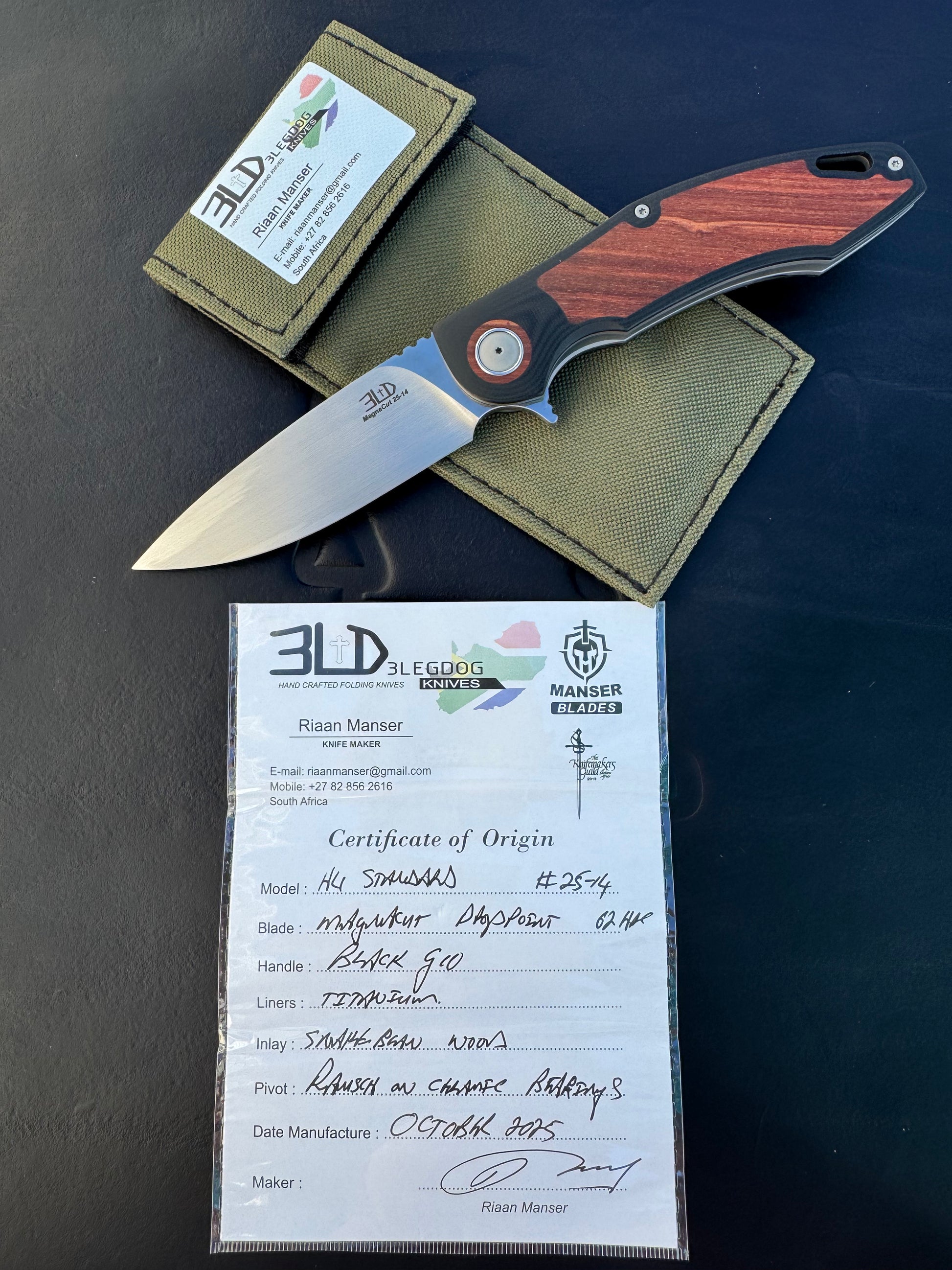 3LD Model H4 Standard Magnacut Custom Folding Knife with Snake Bean Wood Inlay (Riaan Manser)