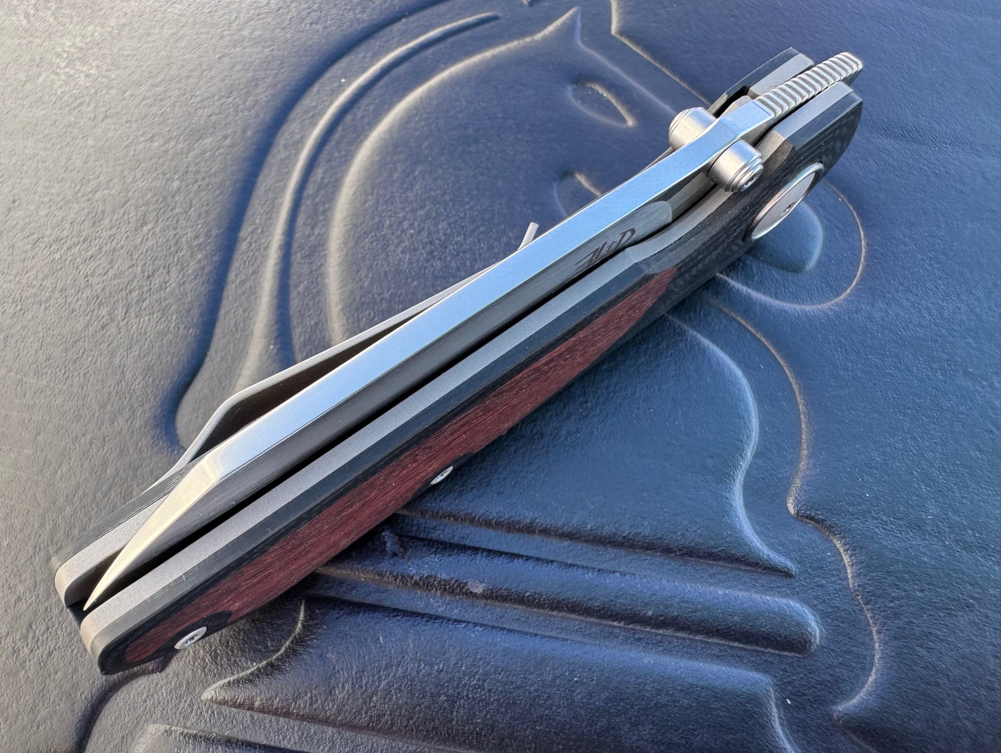 3LD Model L9 Midi Custom Folding Knife (Snake Bean Wood Inlay)